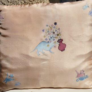 Et pour compléter la collection : deux coussins clairs, un coussin plus vif.